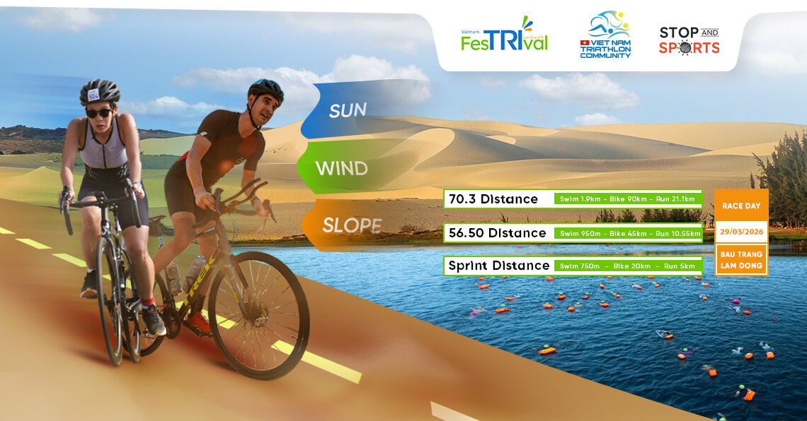 Vietnam FesTRIval Lâm Đồng 2026 – một ngày hội của cộng động Triathlon Việt Nam, đánh dấu sự hợp tác giữa Stop And Sports (SAS) và Vietnam Triathlon Community (VNTC). Vietnam FesTRIval gồm 3 cự ly thi đấu 70.3, 56.50 (half 70.3) và Sprint.