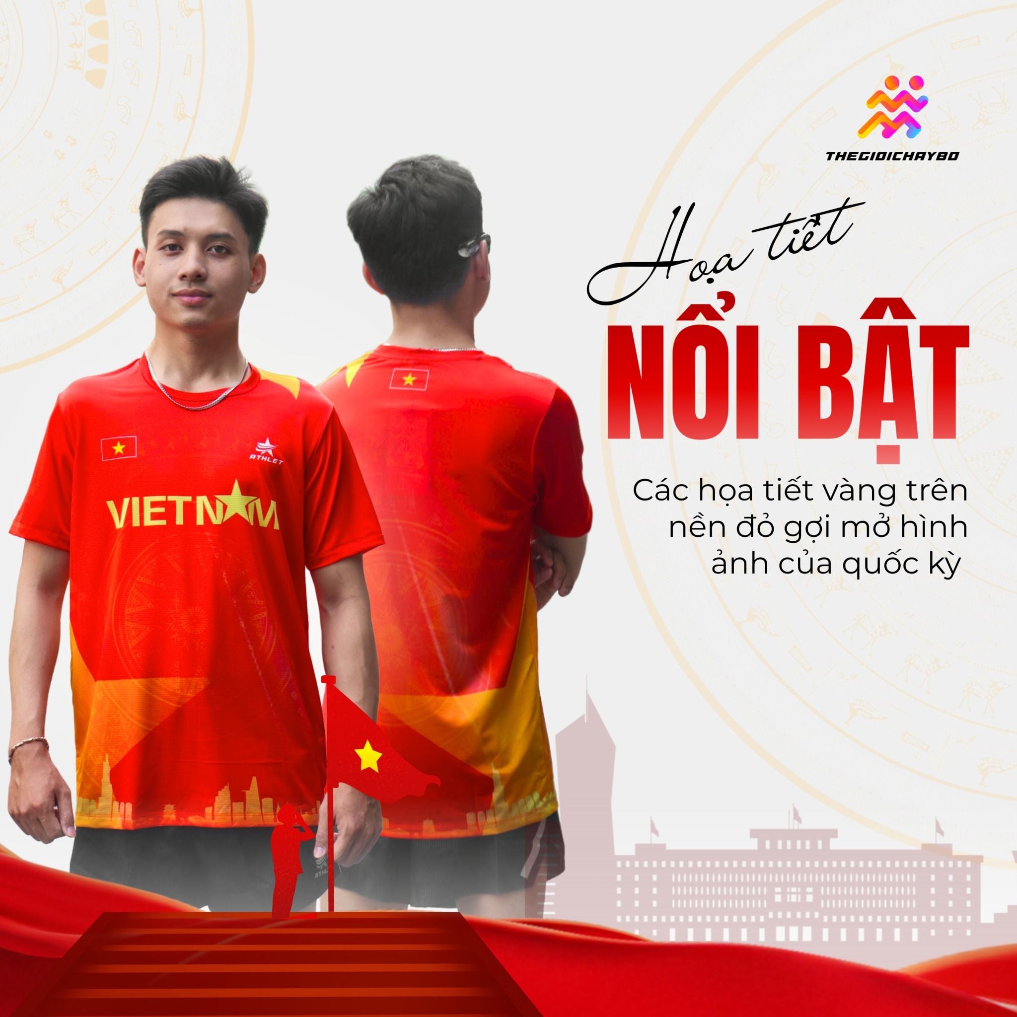 Màu sắc nổi bật cùng họa tiết mang đậm tinh thần Việt Nam giúp người mặc trở nên tự tin, nổi bật và giàu năng lượng hơn khi luyện tập hoặc thi đấu.