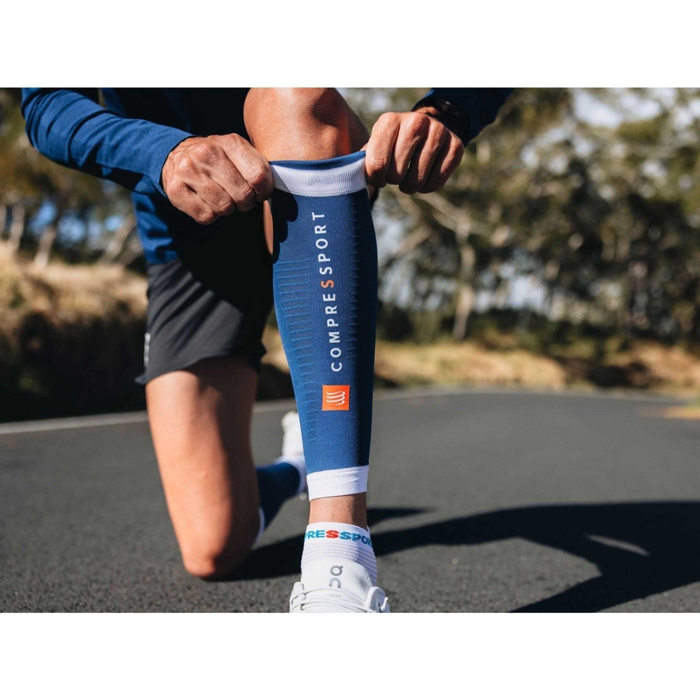 BĂNG BẢO VỆ BẮP CHÂN COMPRESSPORT R2 3.0 - ESTATE BLUE/WHITE