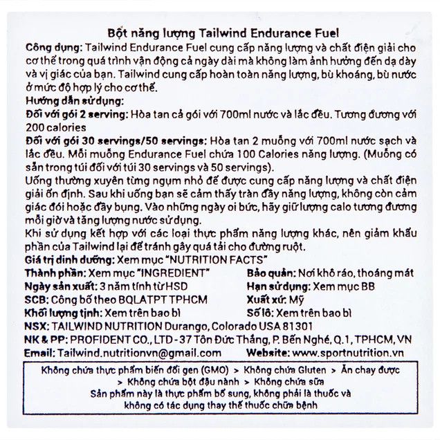 Tên sản phẩm | Bột năng lượng Endurance Fuel Tailwind |