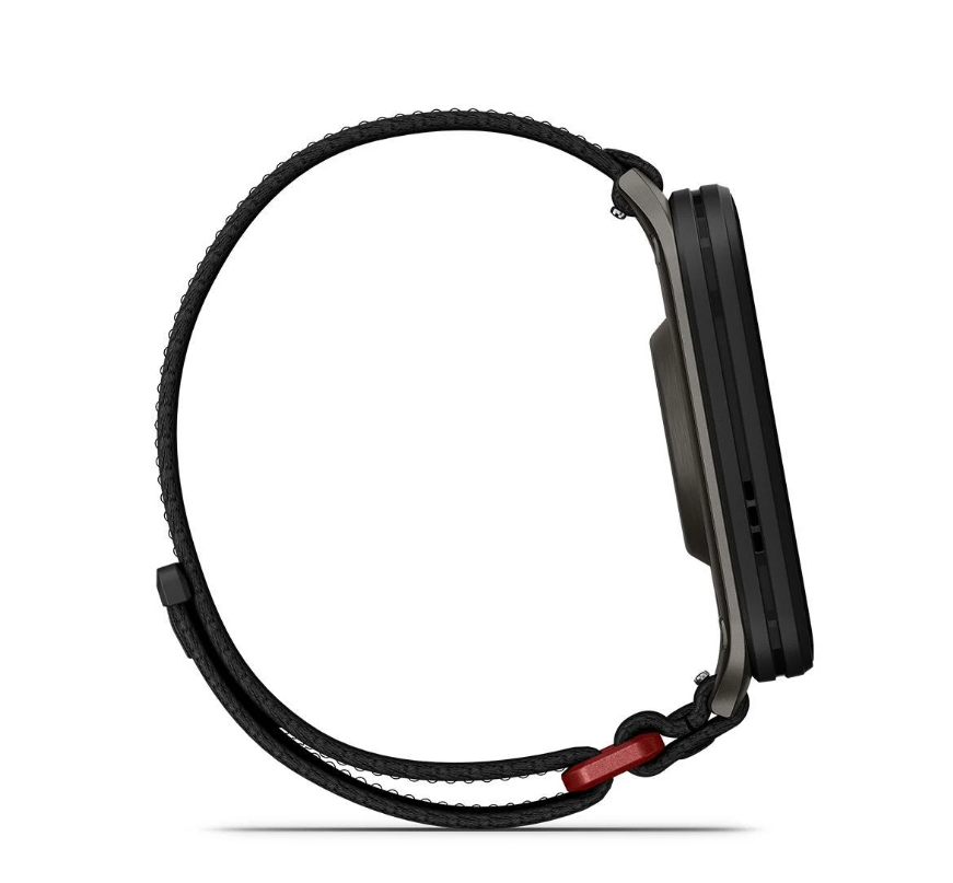 Điểm nhấn đầu tiên khi nhìn vào Garmin Venu X1 là vẻ ngoài tinh tế, hiện đại. Mặt đồng hồ có đường kính 51.2 mm, làm từ kính cường lực chống xước, khung viền titanium chắc chắn nhưng vẫn nhẹ nhàng. Dây đeo silicone mềm mại, dễ tháo lắp nhờ thiết kế Quick Release, mang đến sự thoải mái tối đa khi đeo cả ngày.