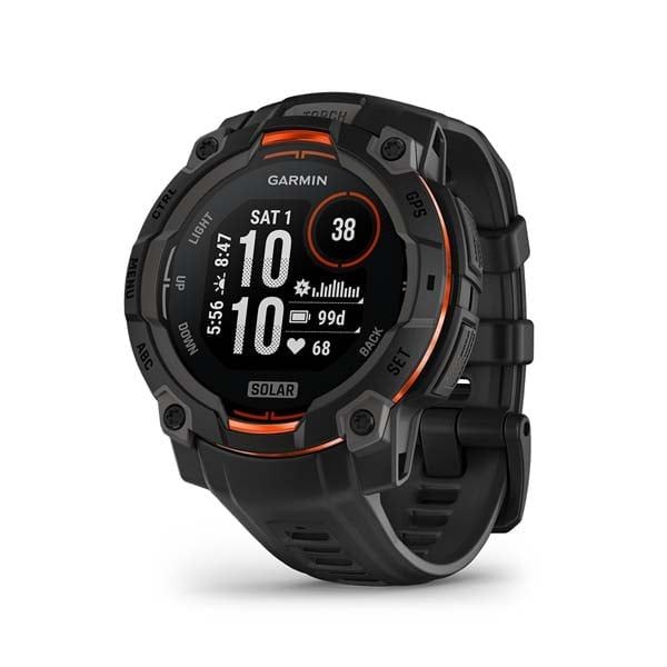 Garmin Instinct 3 Solar là mẫu smartwatch GPS thuộc thế hệ Instinct thứ ba, kết hợp thiết kế hầm hố chuẩn quân đội (MIL-STD-810) với pin hỗ trợ sạc năng lượng mặt trời, giữ cho đồng hồ hoạt động gần như không ngừng nghỉ. Phiên bản 45 mm trang bị đèn LED chiếu sáng đa cấp độ và bộ vỏ gia cố bằng polymer cùng bezel kim loại, giúp máy chịu đựng môi trường khắc nghiệt nhất.