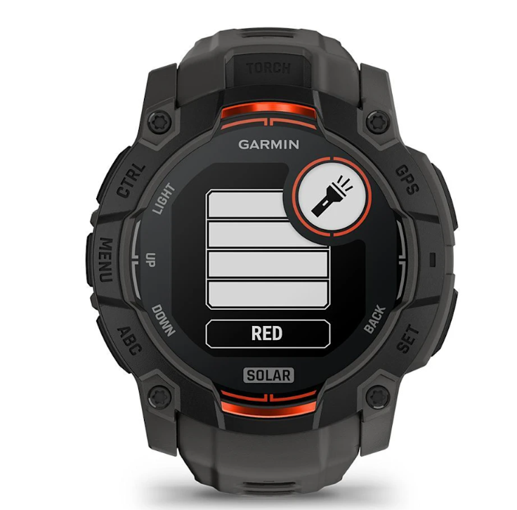 Instinct 3 Solar được trang bị đèn pin sáng rõ ngay trên đồng hồ, hỗ trợ người dùng trong các chuyến đi ban đêm hoặc tình huống khẩn cấp. Bạn có thể điều chỉnh nhiều mức độ sáng, thậm chí sử dụng ánh sáng đỏ để giữ tầm nhìn trong đêm mà không gây chói mắt.