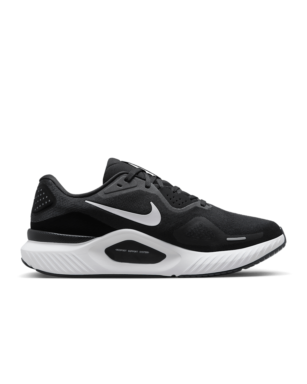 Hệ thống hỗ trợ trung bàn chân và vòm chân giúp kiểm soát chuyển động cổ chân, tạo sự cân bằng vững chắc, giảm nguy cơ chấn thương và giúp người chạy tự tin hơn trên mọi bề mặt đường.
