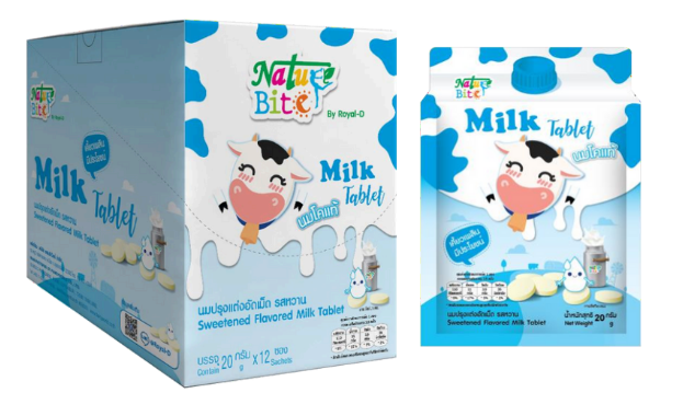 Kẹo sữa bò Natural Bite Royal-D được làm tại Thái Lan bằng công nghệ nén sữa bột hiện đại, giúp giữ nguyên chất dinh dưỡng và vị ngon tự nhiên của sữa bò. Nhờ vậy, viên kẹo vừa chắc, mịn, thơm béo, vừa dễ tan trong miệng, ngon và bổ dưỡng cho mọi lứa tuổi.