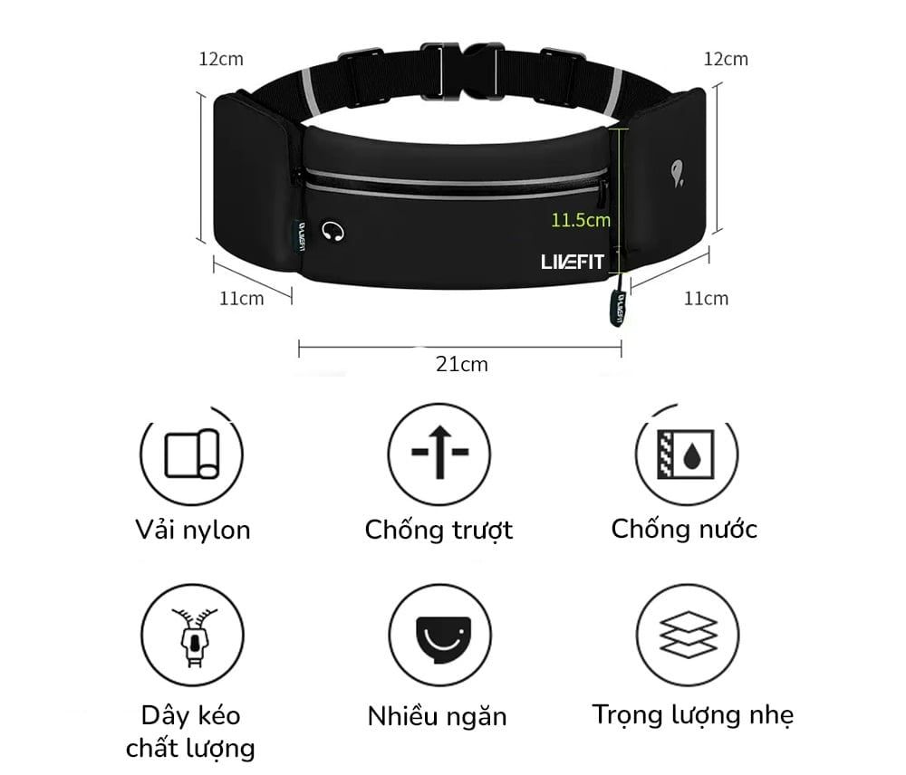 Thế Giới Chạy Bộ – Túi đeo hông chạy bộ LiveFit WB1028 chính hãng