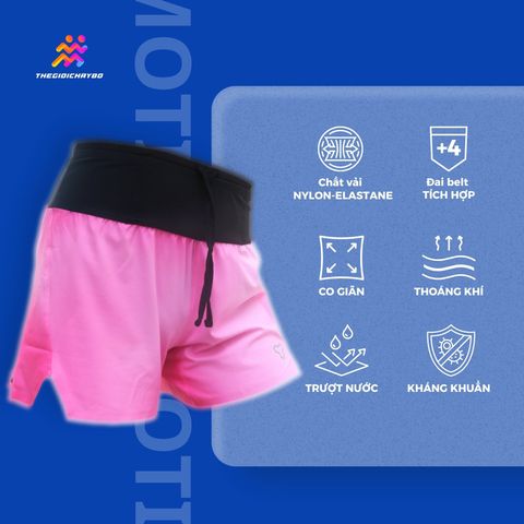 Quần chạy bộ nữ Motive SM201 - Hồng Neon đến từ thương hiệu nội địa MOTIVE, là lựa chọn lý tưởng cho những cô nàng yêu thể thao, đặc biệt là bộ môn chạy bộ. Phiên bản này kết hợp giữa tính thẩm mỹ cao và hiệu năng tối ưu, với thiết kế đai belt tích hợp sau hông, giúp bạn mang theo các vật dụng thiết yếu mà không cần túi phụ.