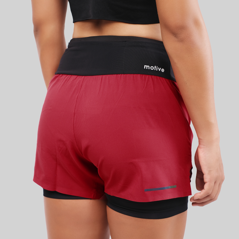Thế Giới Chạy Bộ - Nơi bán quần short chạy bộ nữ Motive SM201 có đai belt - Màu đỏ đô uy tín, chính hãng