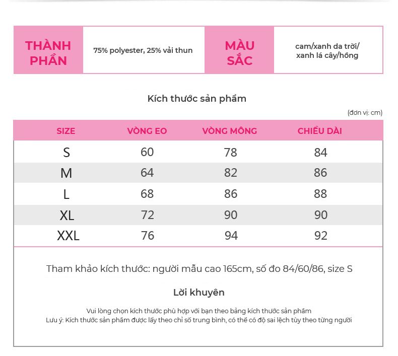 Bạn có thể tham khảo bảng size dưới đây để chọn size phù hợp: