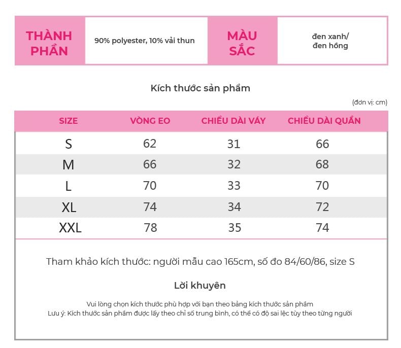 Nếu bạn không chắc chắn về kích thước của mình, hãy đo vòng eo và vòng mông của mình và so sánh với bảng kích thước trên để có thể chọn được size phù hợp.
