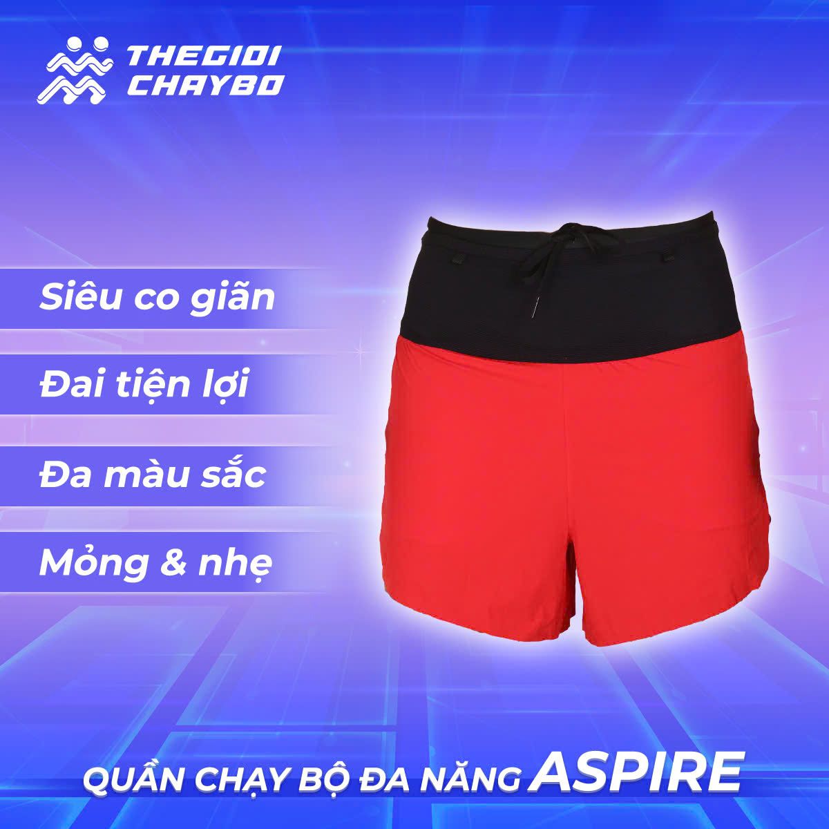Ưu điểm nổi bật của Quần Short Chạy Bộ Aspire APQ603 Đa Năng, Có Đai Belt - Đỏ
