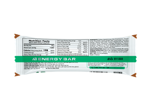 AB Energy Bar – Vị Cacao Bạc Hà là dòng thanh năng lượng cao cấp được nghiên cứu và sản xuất bởi Công ty Cổ phần Nông nghiệp Huỳnh Gia, thương hiệu Việt tiên phong trong lĩnh vực thực phẩm dinh dưỡng tự nhiên.