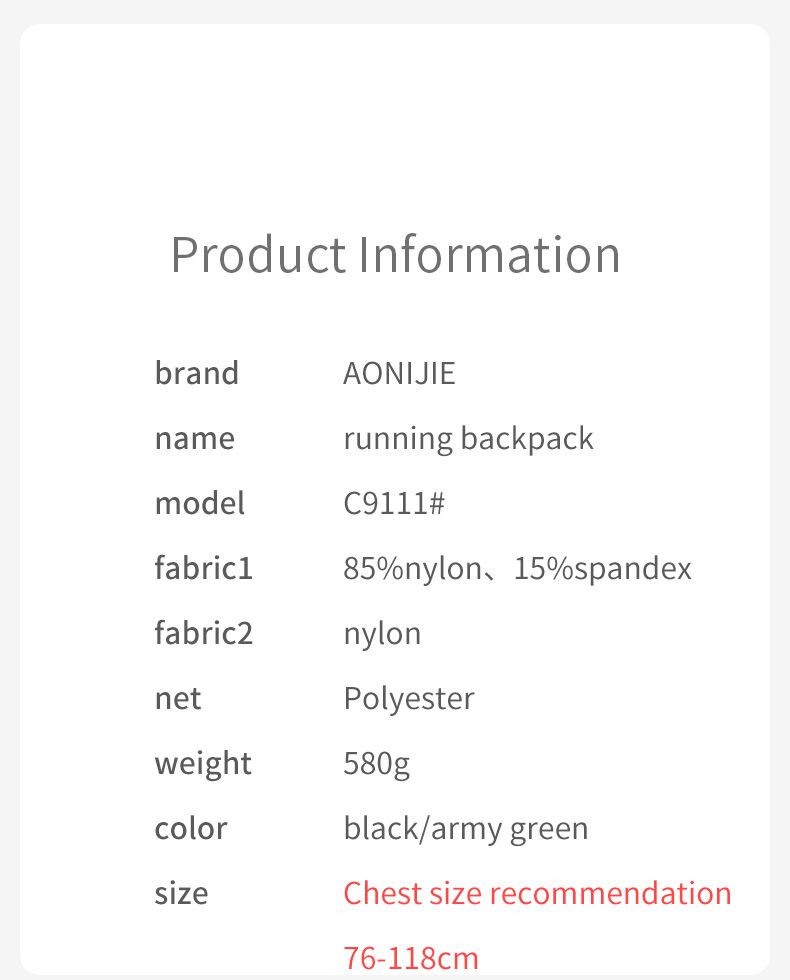 Tên sản phẩm | Vest nước chạy bộ Aonijie |