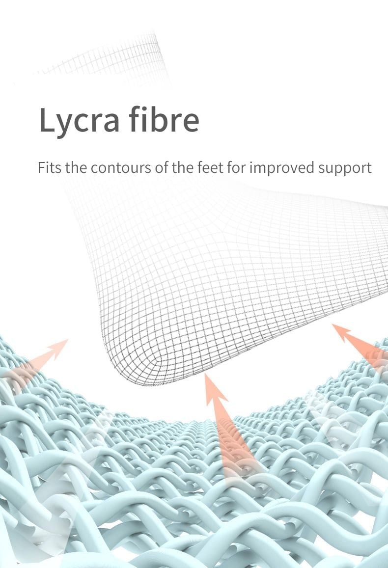 Sợi Lycra co giãn tốt, ôm sát bàn chân nhưng không gây cảm giác gò bó. Đường may tinh tế, hạn chế cọ xát gây khó chịu.