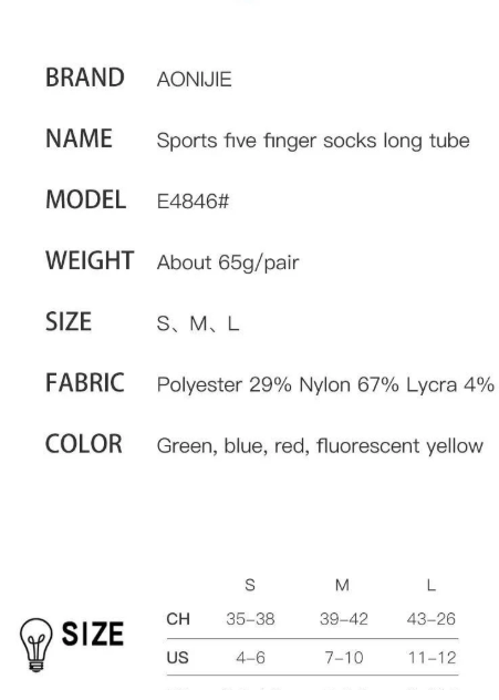 - Tên sản phẩm: Tất / vớ thể thao xỏ ngón